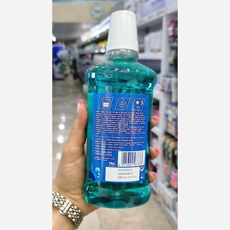 _از بین برنده پلاک و میکروبهای دندان و تمام پوسیدگی ها _ضدعفونی کننده لثه و دهان وافت ها دهانی _ایجاد لایه محافظ روی دندان و مینای دندان و ریشه _سفید کننده دندان و ازبین بردن زردی _جلوگیری از پوسیدگی دندان و خرابی و بوی بد _خوشبو کننده و خنک کننده دهان و حفظ بوی دهان _دارای رایحه گیاهی _محصول کشور آلمان _حجم 500 میل