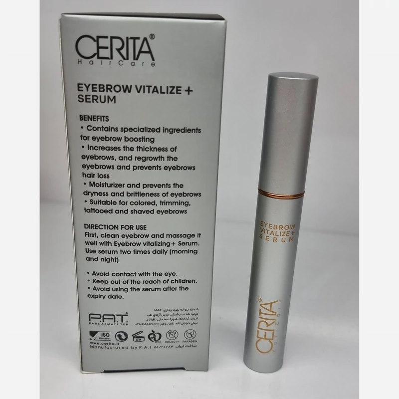 _سرم ابرو سریتا تقویت کننده و پرپشت کننده، افزایش _ضخامت تار ابرو _افزایش خون رسانی به ریشه ابرو _حاوی عصاره رزماری، روغن کرچک و ویتامین E _دارای خاصیت رطوبت رسانی و جلوگیری از خشکی و شکنندگی ابرو _افزایش فاز آناژن و کمک به رویش مجدد ابروها _ حجم 8میلی لیتر